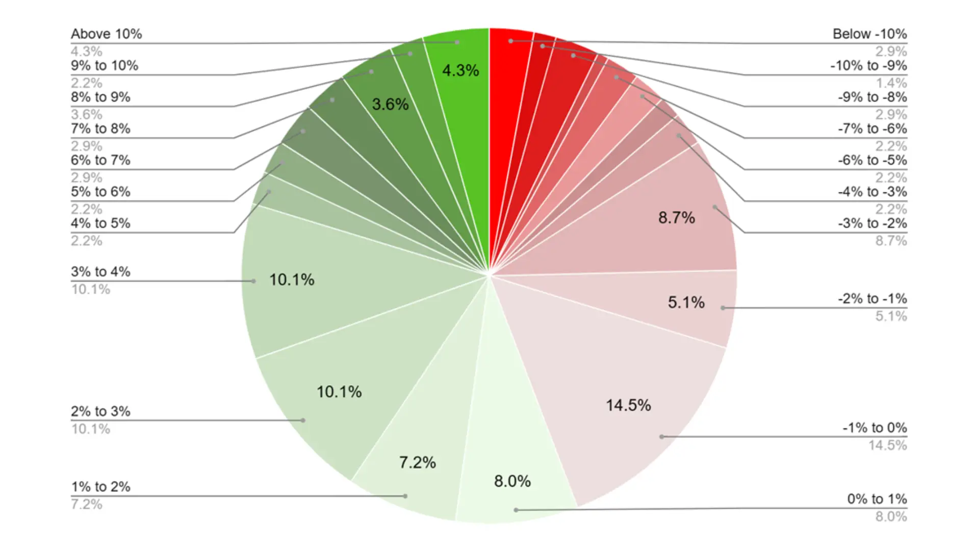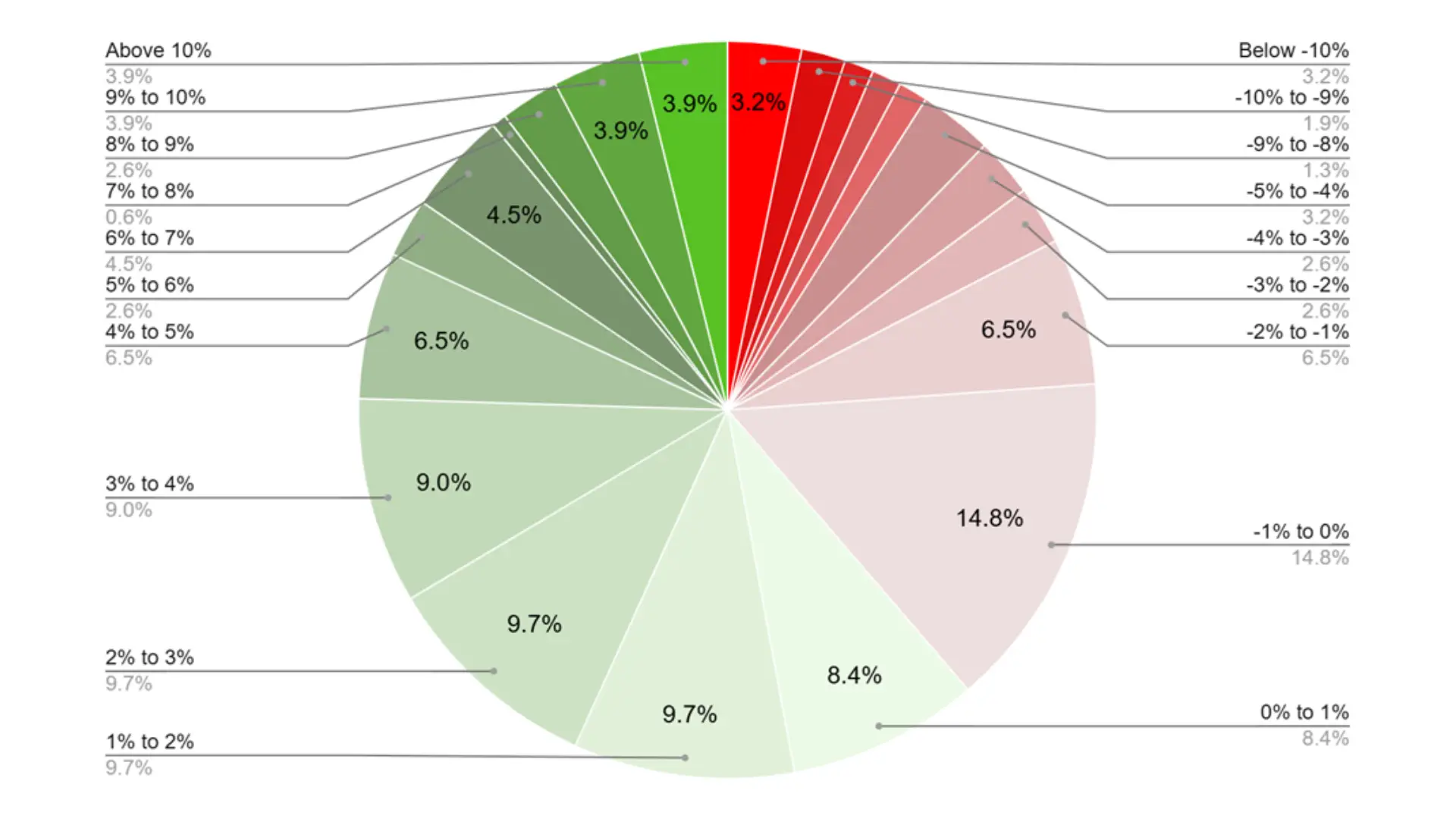 the largest concentration of firms now sits in the 0%–5% ebitda range, indicating widespread movement toward breakeven and modest profitability rather than volatility or extreme outcomes.