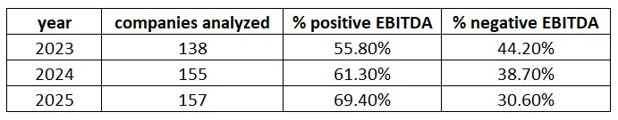 percentage of companies with positive EBITDA